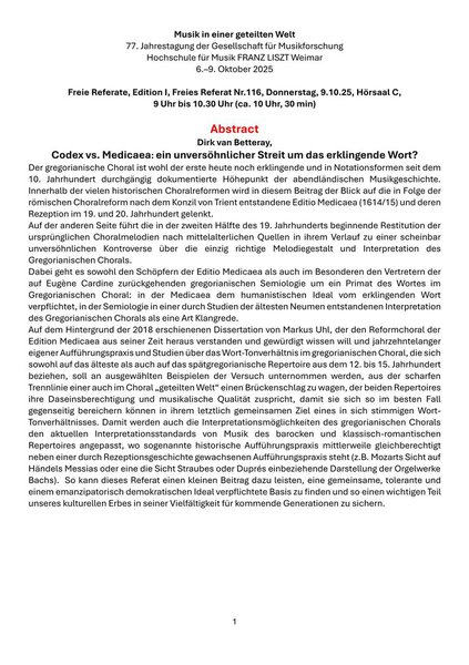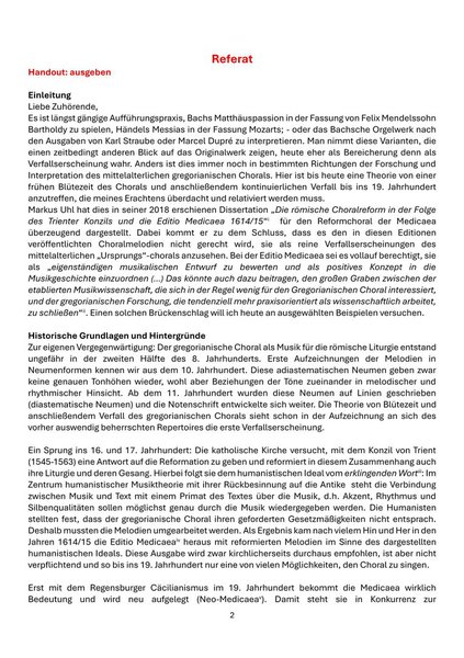 ° Codex vs. Medicaea: ein unversöhnlicher Streit um das erklingende Wort? - Referat gehalten auf